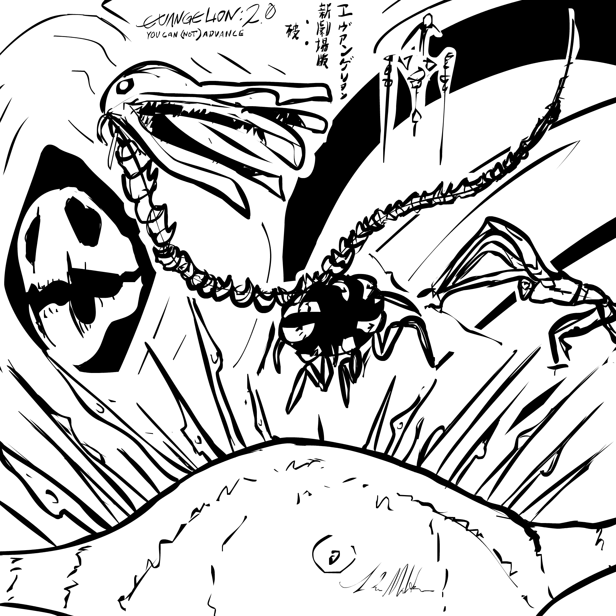 Also, there is another thing that I found weird. But it’s not something from the film itself. Or maybe it is. Basically what I mean is that. When I went on to EvaWiki to find visual references of the angel-battles I found myself in disbelief. I do not remember “10th angel”. Who got all the way down to the base to have a staredown with Misato and the whole NERV-crew.