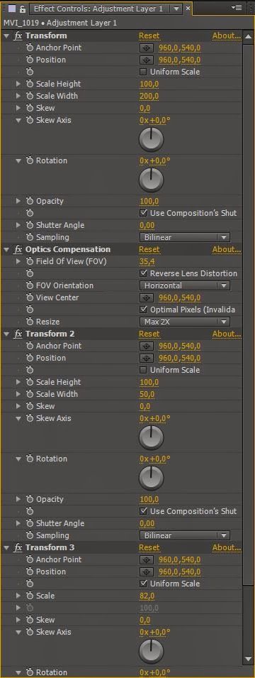 Then I stumbled on an article on NoFilmSchool.com where this fellow called Vashi had been toiling away with the same set of problems. But instead of going for super-wide fish-eyed lenses. He based his method on just mimicking the curvature of the images that Wes Andersons (there he popped up again in this context) favorite lens (Primo 40 anamorphic) produced. Seems he did some simple math. The Primo 40 is 40 mm with 2.0x anamorphic distortion. That means it has twice its width. Something more like a 20mm lens. So using footage from 20mm lenses (taking into account the slight difference in actual negative size of 35mm anamorphic film versus the super 35 esque 16:9 sensor of course) he just did a trial and error to replicate the curvature using various distortion-methods before settling on the Bezier Warp. (I am guessing on his approach though, since I’m not him).
